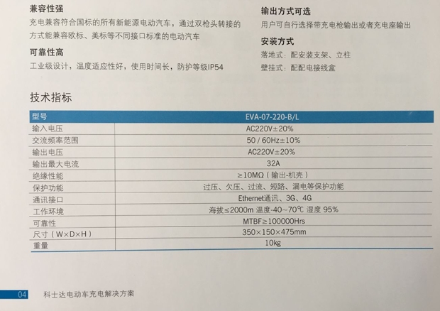 充电兼容符合国标的所有新能源电动汽车,通过双墙头转接的方式能兼容欧标、美标等不同接口标准的电动汽车
