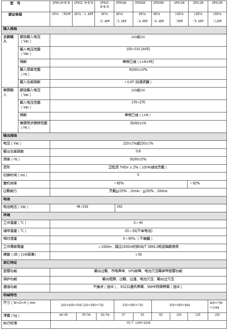 · 宽广的电压输入范围达150Vac~310Vac(加AVR),避免频繁地切换至电池供电